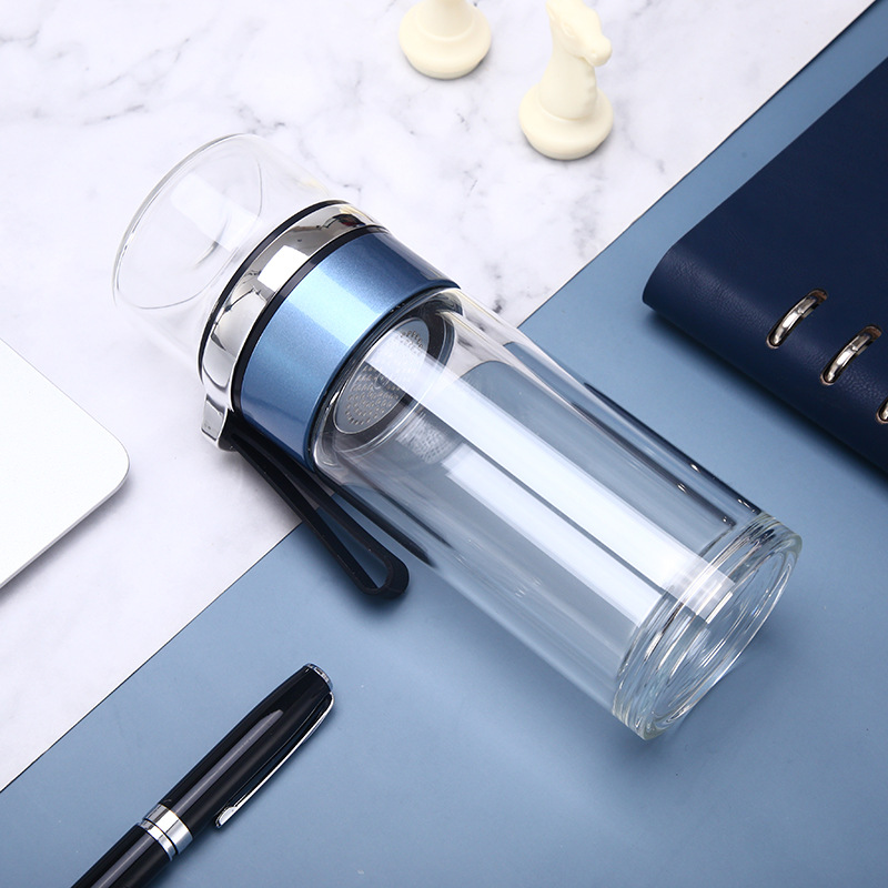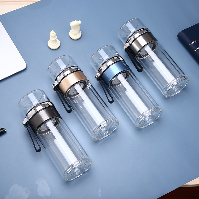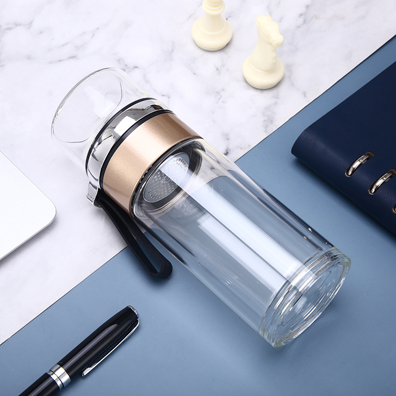 夏季便攜雙層玻璃杯泡茶水分離杯子辦公商務廣告禮品批發定制LOGO