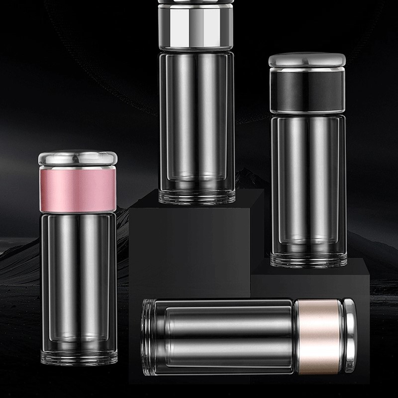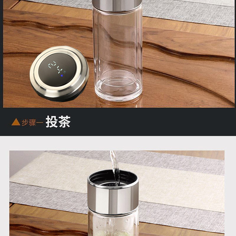 智能顯示雙層茶水分離玻璃杯