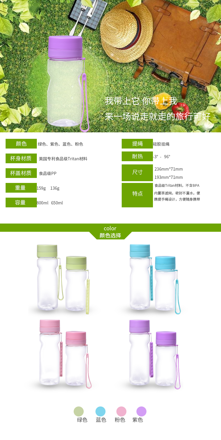 便攜防漏tritan水杯 防燙塑料杯子 隨身杯 帶濾網運動水杯 320ml