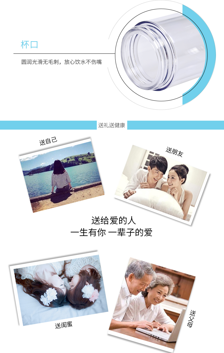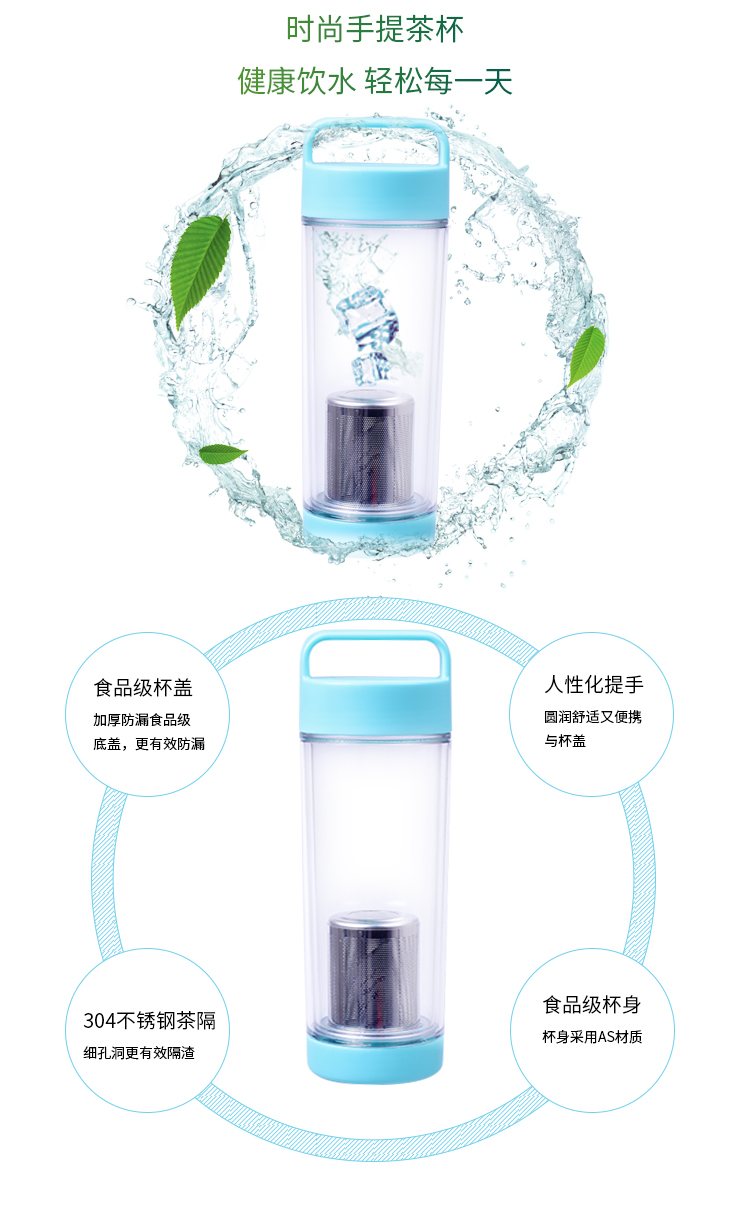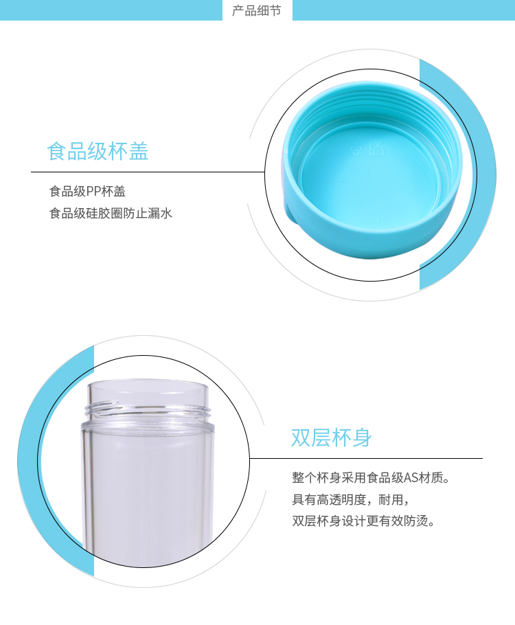 水杯大容量戶外運動水壺 塑料杯子 隨手杯 學生杯子 創(chuàng)意便攜防漏水杯 天藍色 650mL-800ml